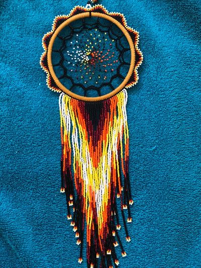 Crafted from porcupine quills and in beautiful sunburst and other designs.